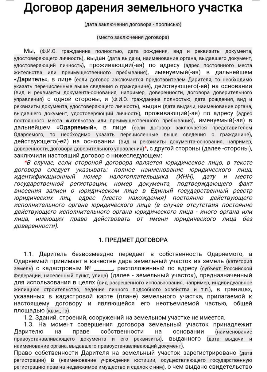 Как составить и оформить договор дарения доли земельного участка родственнику? Дарение, как любые другие сделки по безвозмездному отчуждению имущества, должны совершаться крайне обдуманно и грамотно. Иначе стороны рискуют получить совершенно не тот результат, на который рассчитывали сначала, либо допустить серьезную непоправимую ошибку.