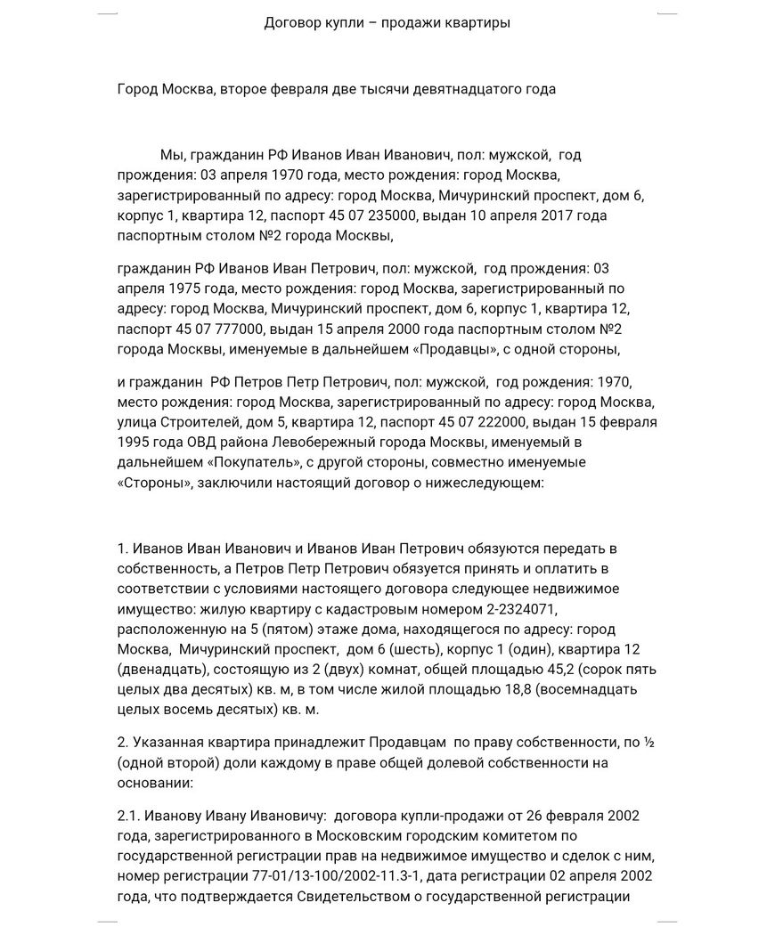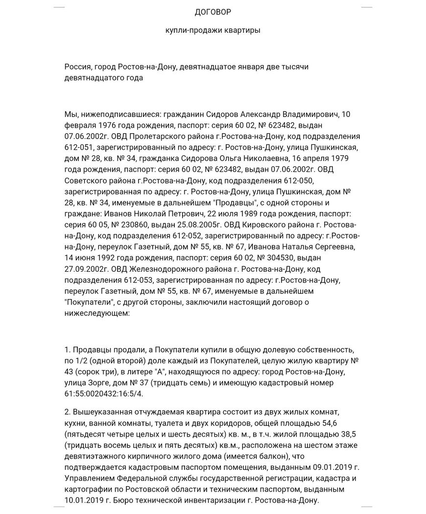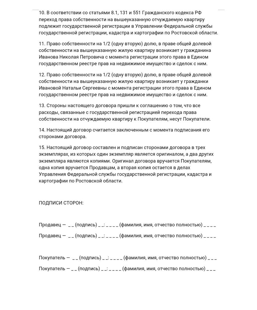 Как правильно составить договор купли-продажи долей в квартире, если два продавца