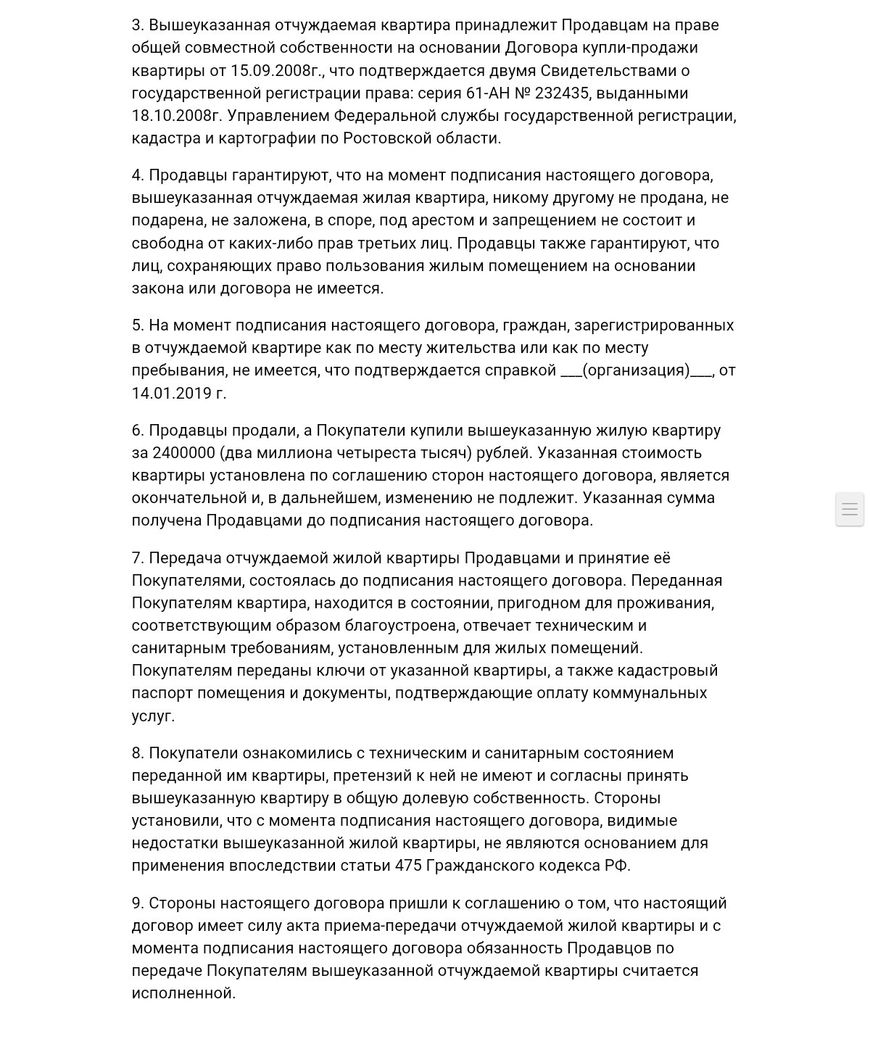 Образец договора купли-продажи долей в квартире — два продавца, один покупатель