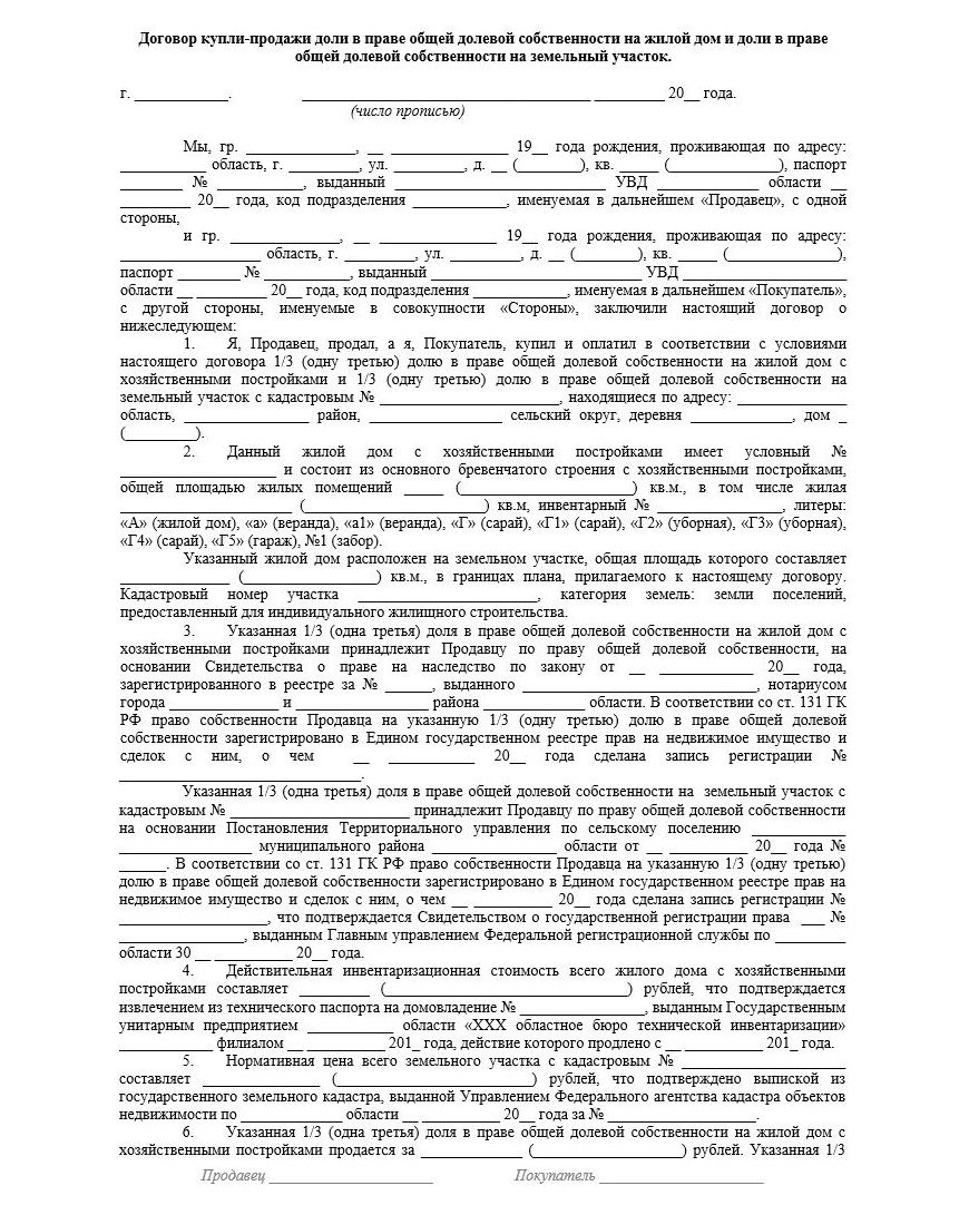 Образец договора купли-продажи доли жилого дома и доли земельного участка