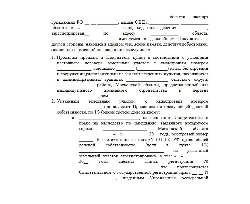 Образец договора купли-продажи ½ доли земельного участка