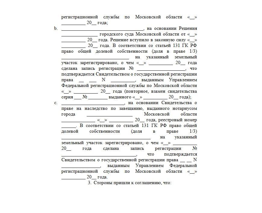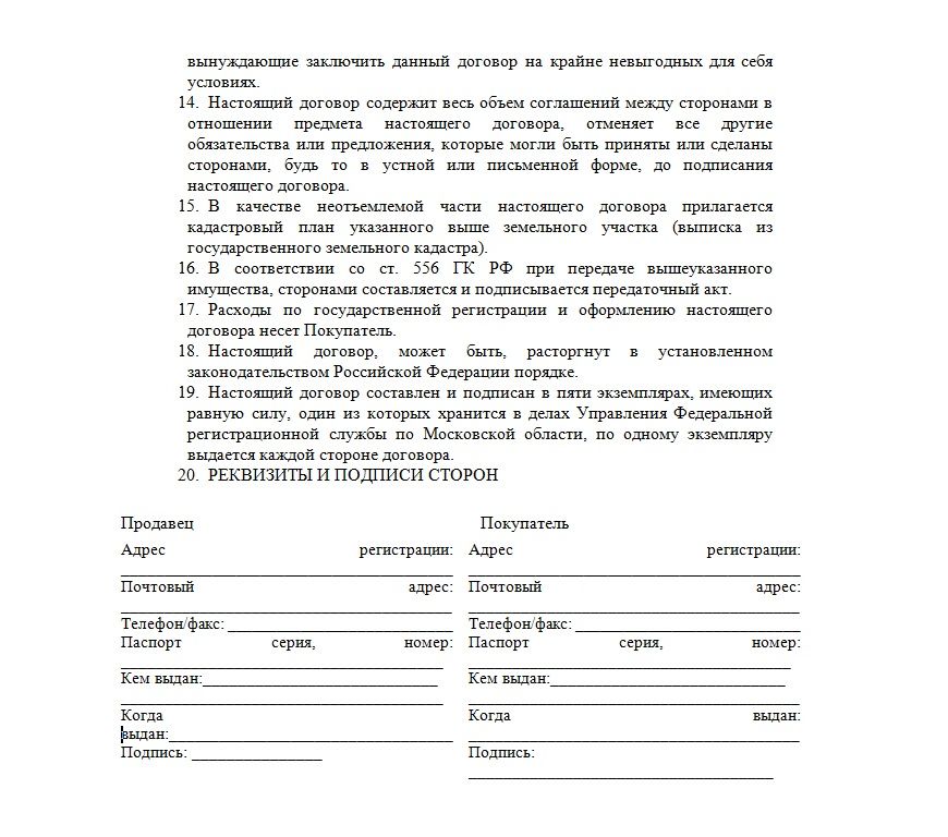 Договор купли-продажи доли надела имеет установленную структурную форму. Так, здесь должны содержаться следующие обязательные пункты: