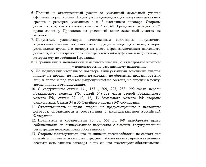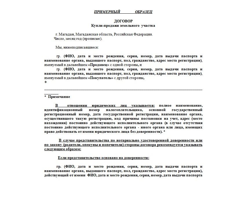 В ситуации, когда собственником целого надела или какой-либо его доли выступает ограниченно дееспособное лицо или несовершеннолетний ребенок, нотариальное заверение документа также является обязательным условием (ст. 54 ФЗ № 218 от 13.07.2015). Кроме того, в последнем случае в типовой договор купли-продажи вносятся следующие коррективы: