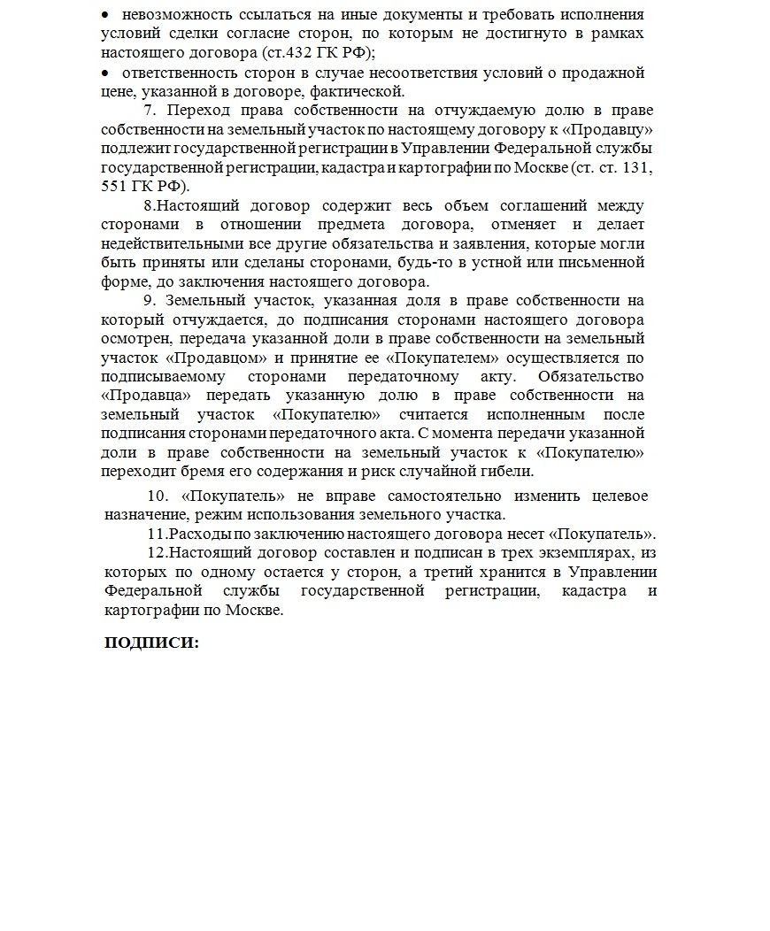 Договор купли-продажи доли земельного участка