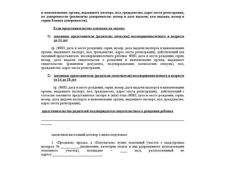 Образец договора купли продажи доли земельного участка несовершеннолетнего