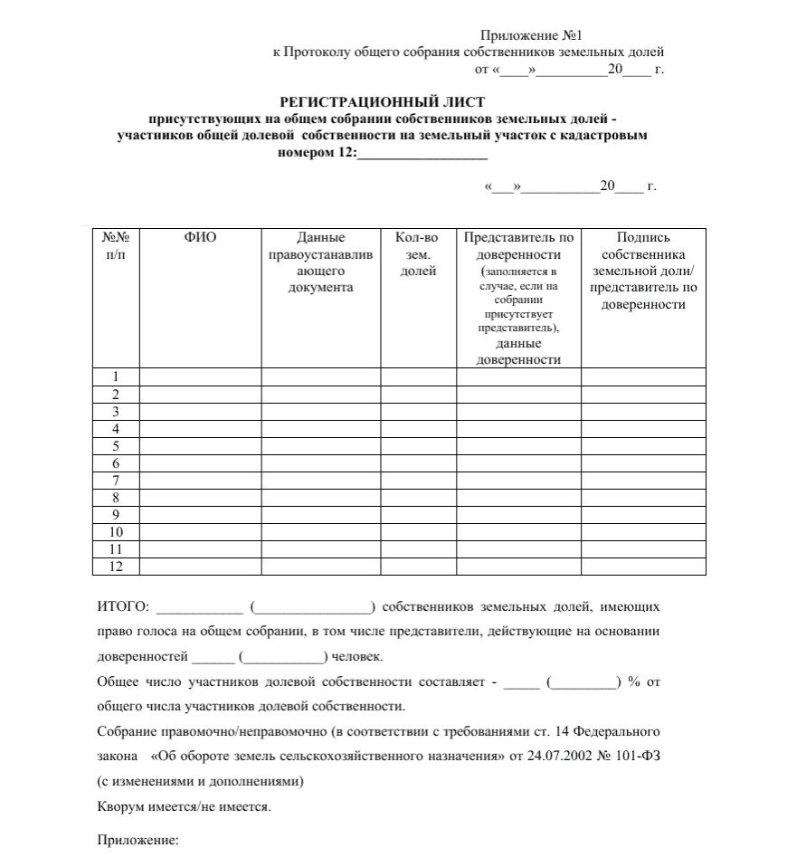 - на собрании присутствует как минимум 20% от общего количества собственников земельного надела;