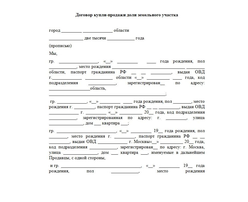Договор купли-продажи доли земельного участка
