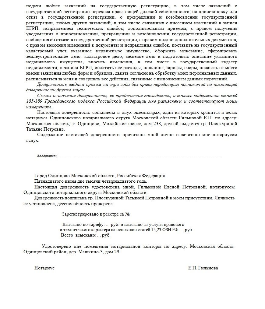 Доверенность должна быть напечатана на особом гербовом бланке, а также заверена подписью и печатью нотариуса. В текст доверенности включаются следующие сведения: