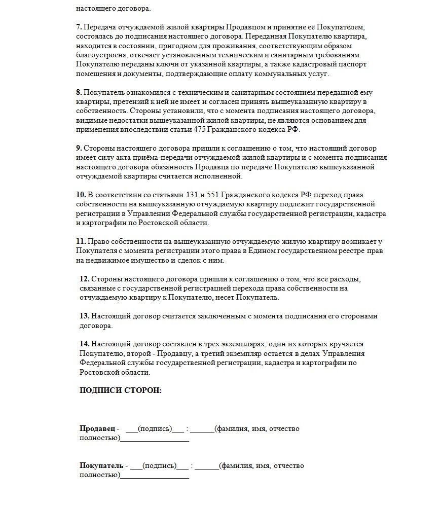 - Пункт о необходимости регистрации договора купли-продажи в территориальном отделении Росреестра.