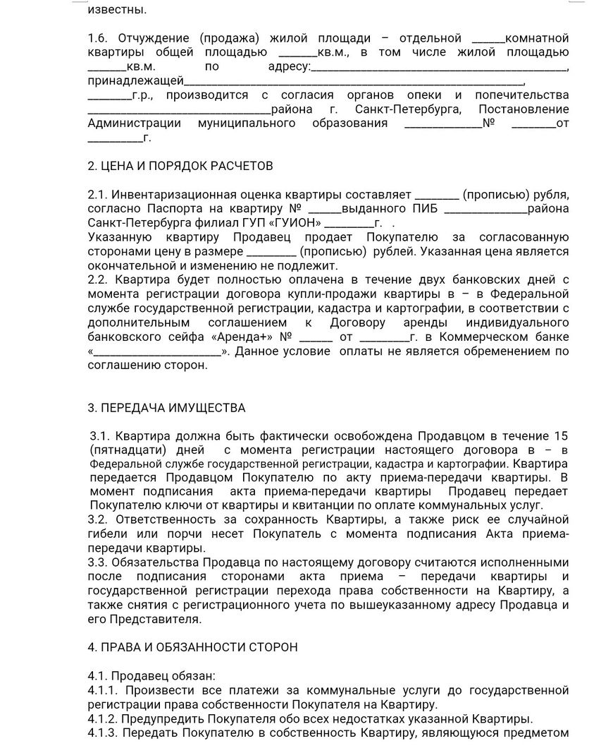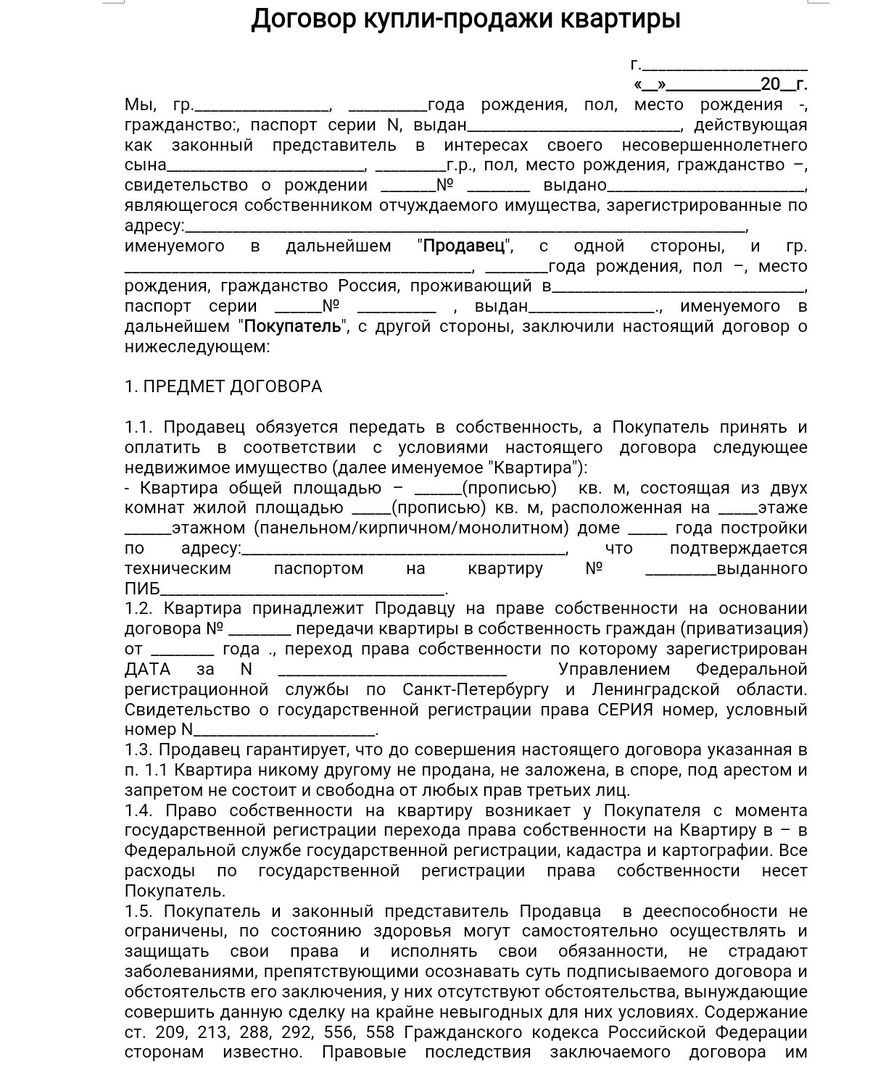 Договор купли-продажи квартиры с несовершеннолетним может выглядеть следующим образом: