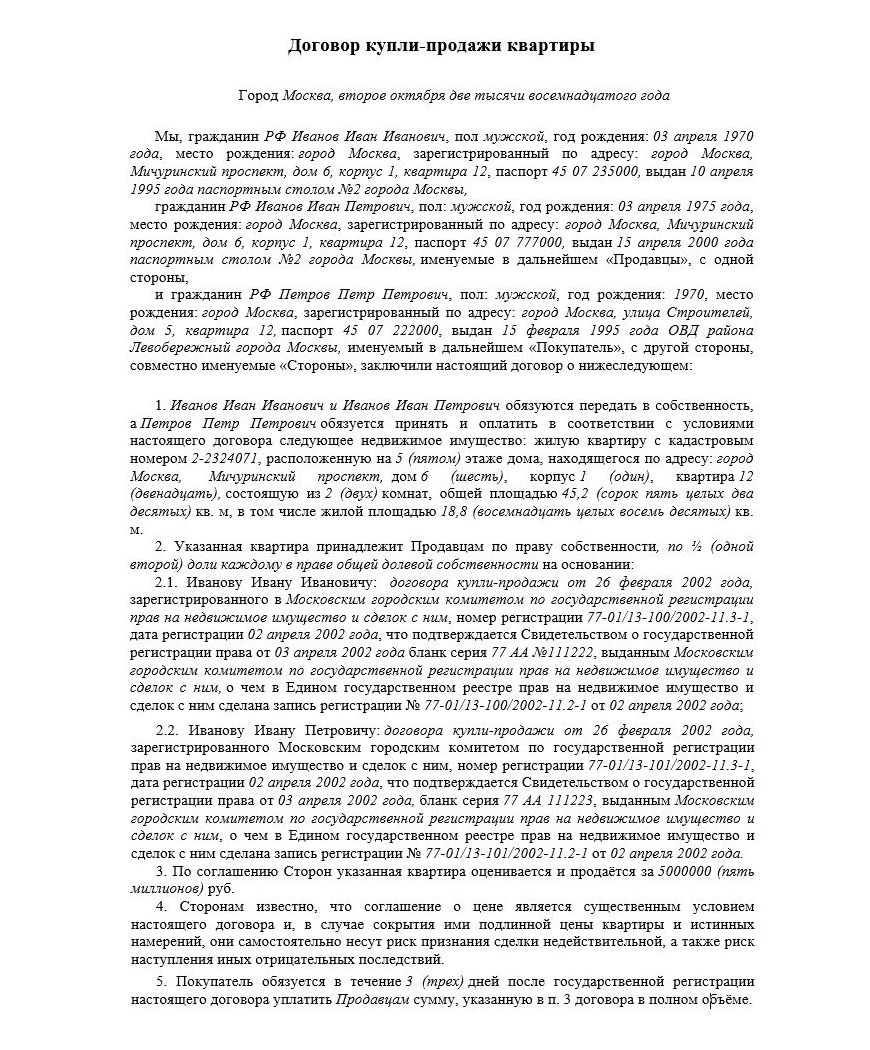 Как правильно составить договор купли-продажи квартиры