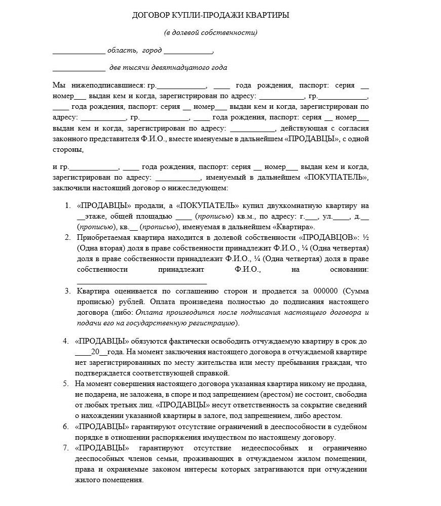 Договор купли-продажи квартиры в долевой собственности