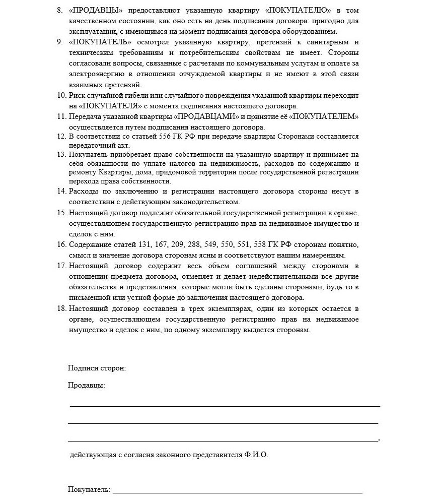 Типовой бланк договора купли-продажи квартиры содольщиками (несколько продавцов)