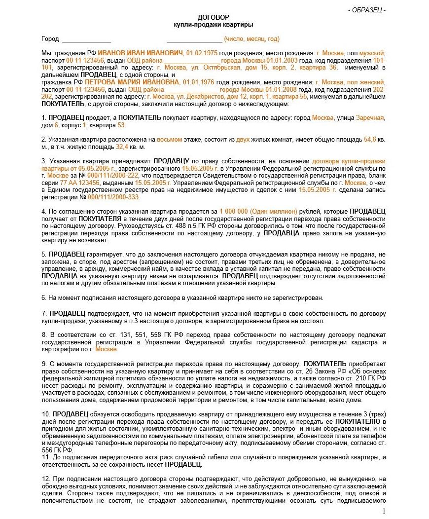 Образец договора купли-продажи квартиры между физическими лицами 2025