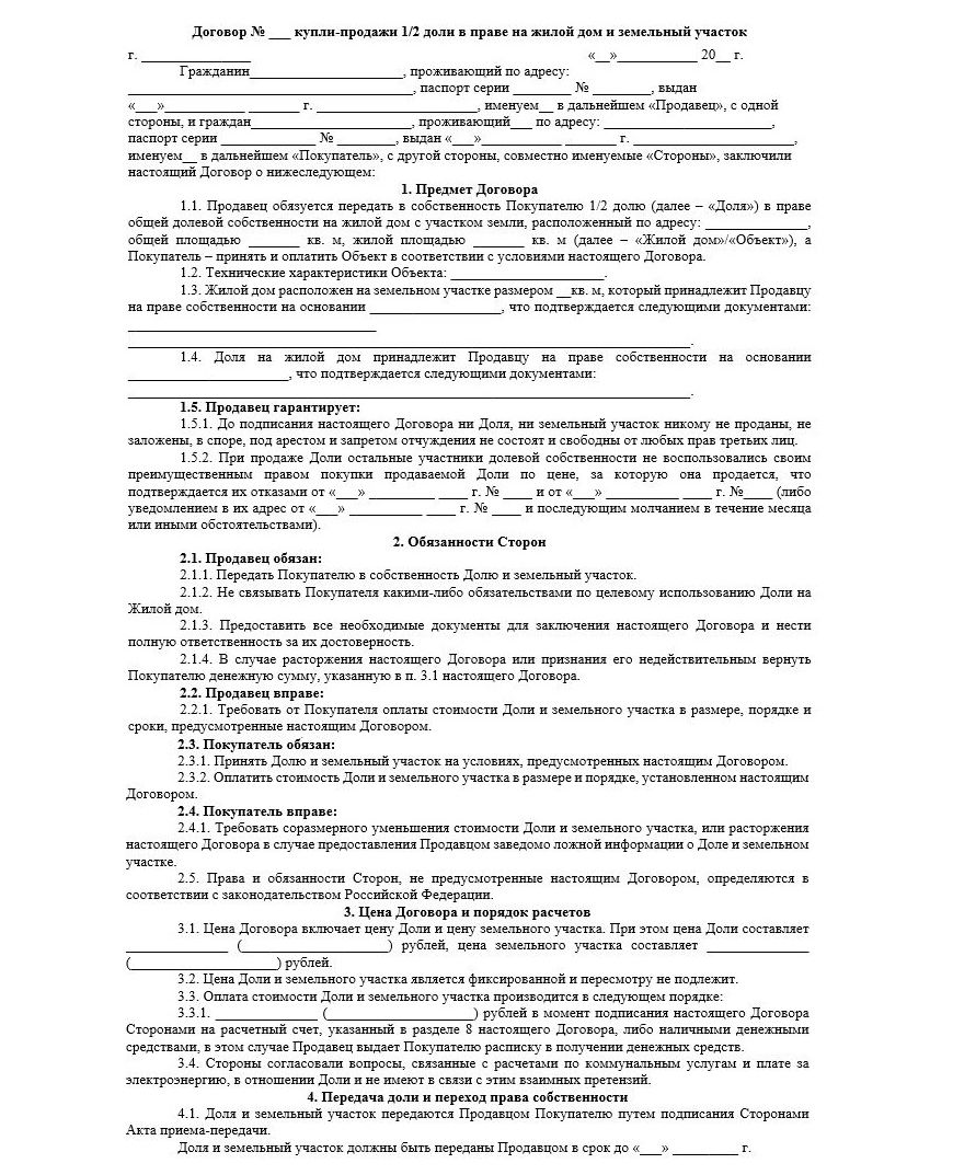 Как продать долю в доме без земли