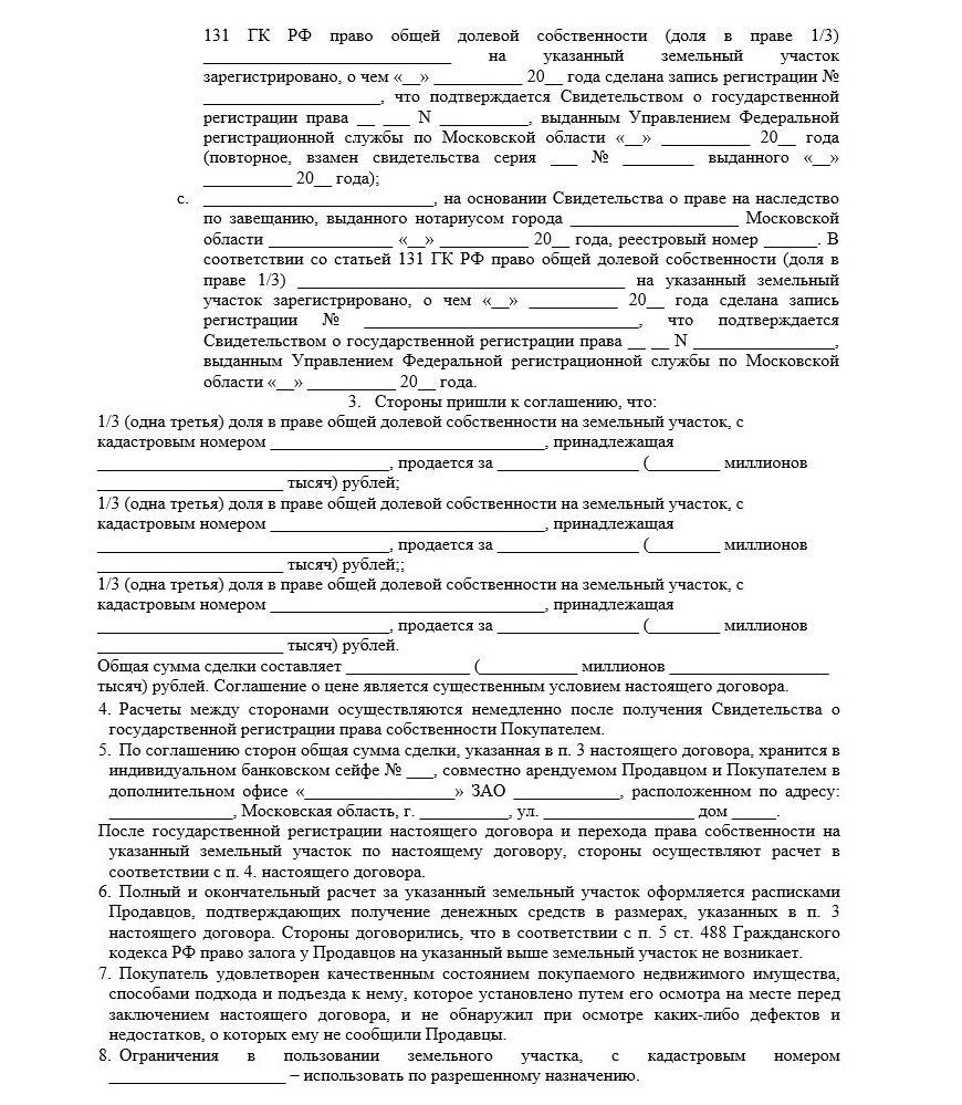 После процесс реализации доли не отличается от продажи целого земельного участка.
