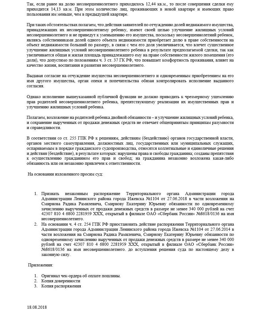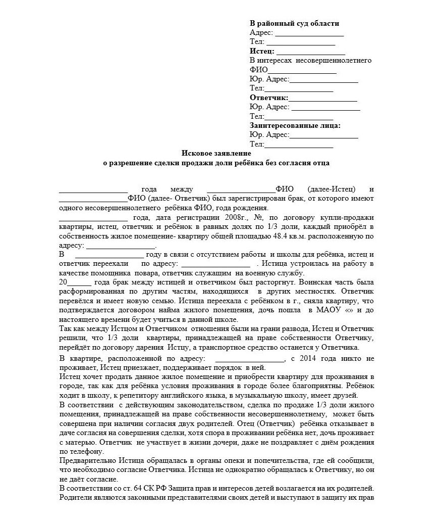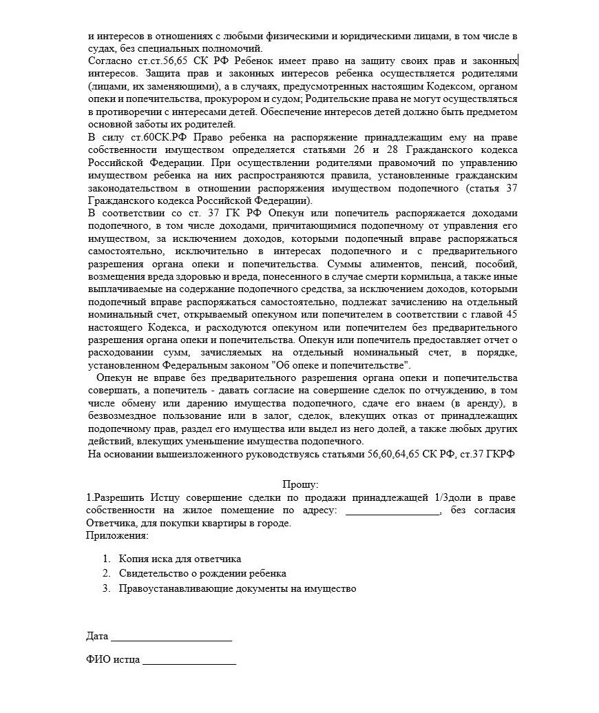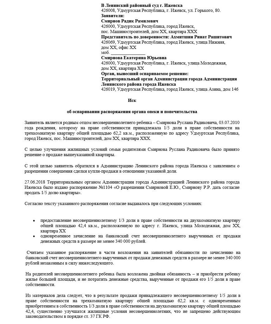 Опровержение решения органов опеки о запрете продажи доли несовершеннолетнего в квартире