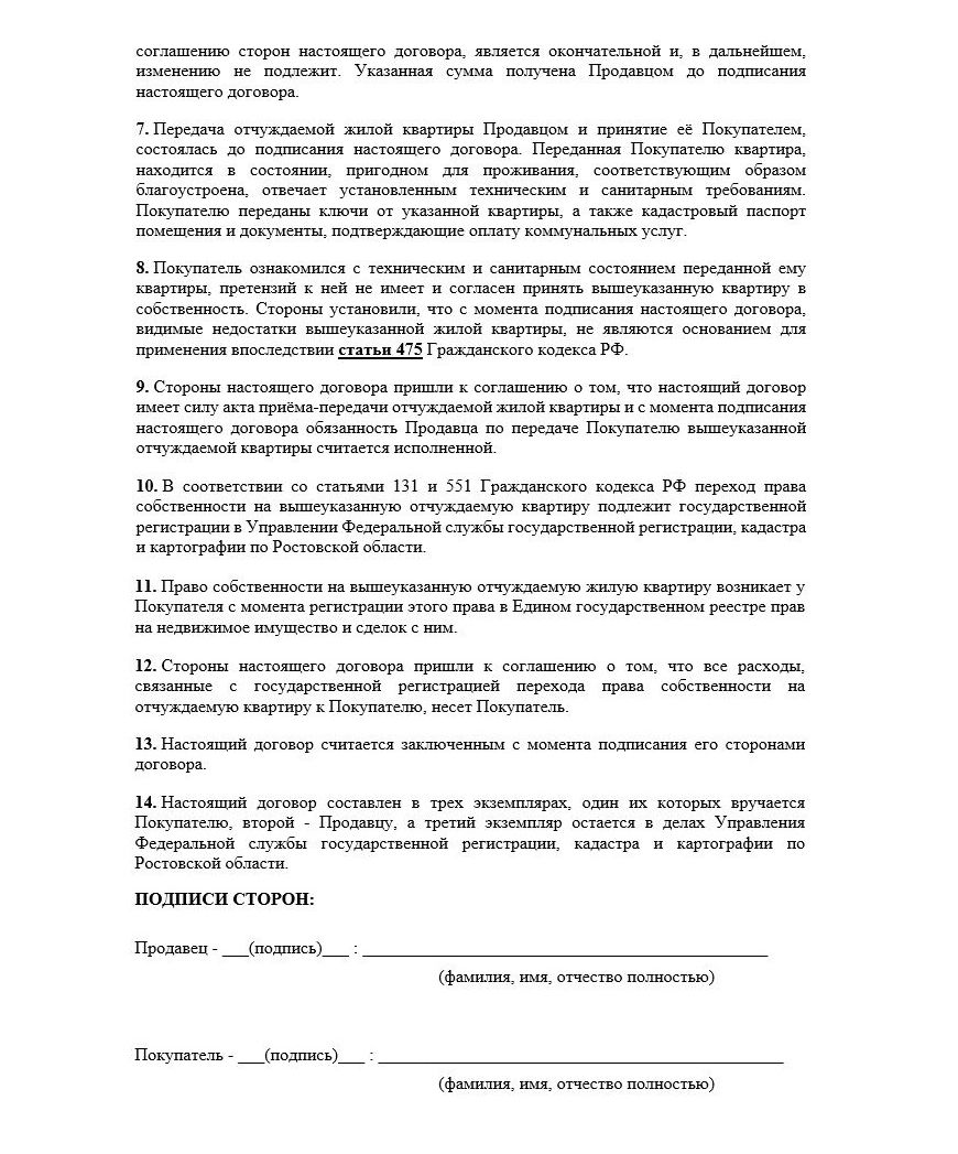 Если имеются некоторые нюансы, например, оплата за недвижимость будет осуществляться в рассрочку, об этом следует указать отдельным пунктом.