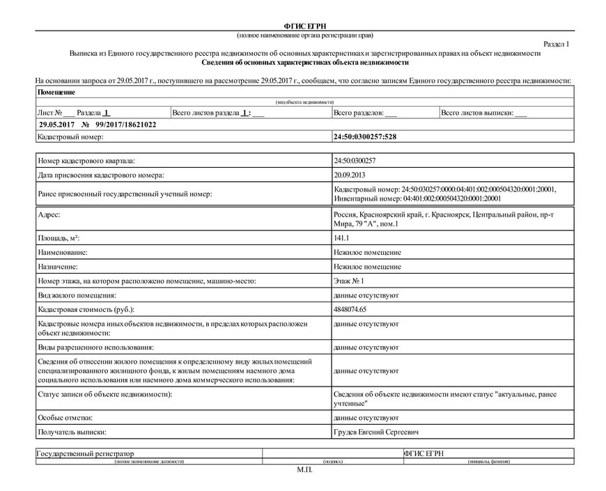 - Получить электронный документ в течение 1-3 рабочих суток. Выписка удостоверяется электронной подписью ФПК Росреестра.