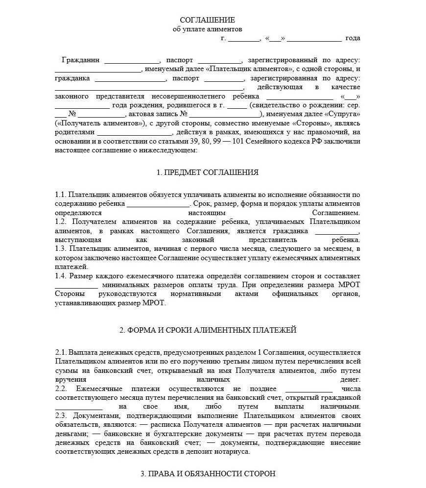 Документ должен освещать все аспекты двухсторонних отношений: период осуществления перечислений, сумму, способ уплаты алиментов, ответственность за несоблюдение обязательств.