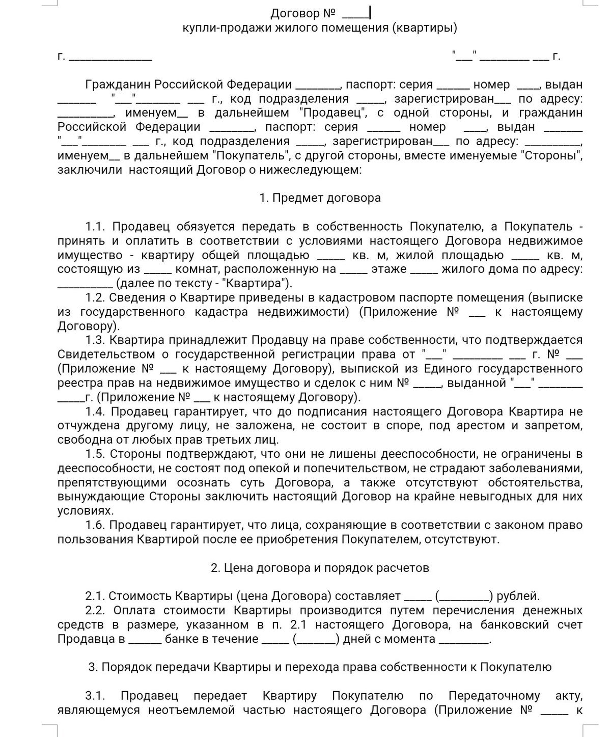 Договор купли-продажи квартиры
