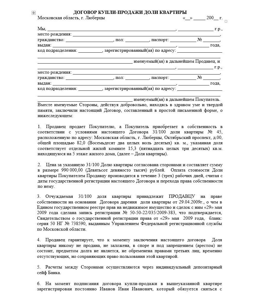 Наиболее распространенными являются операции по добровольному отчуждению доли в квартире, одна из которых — продажа.