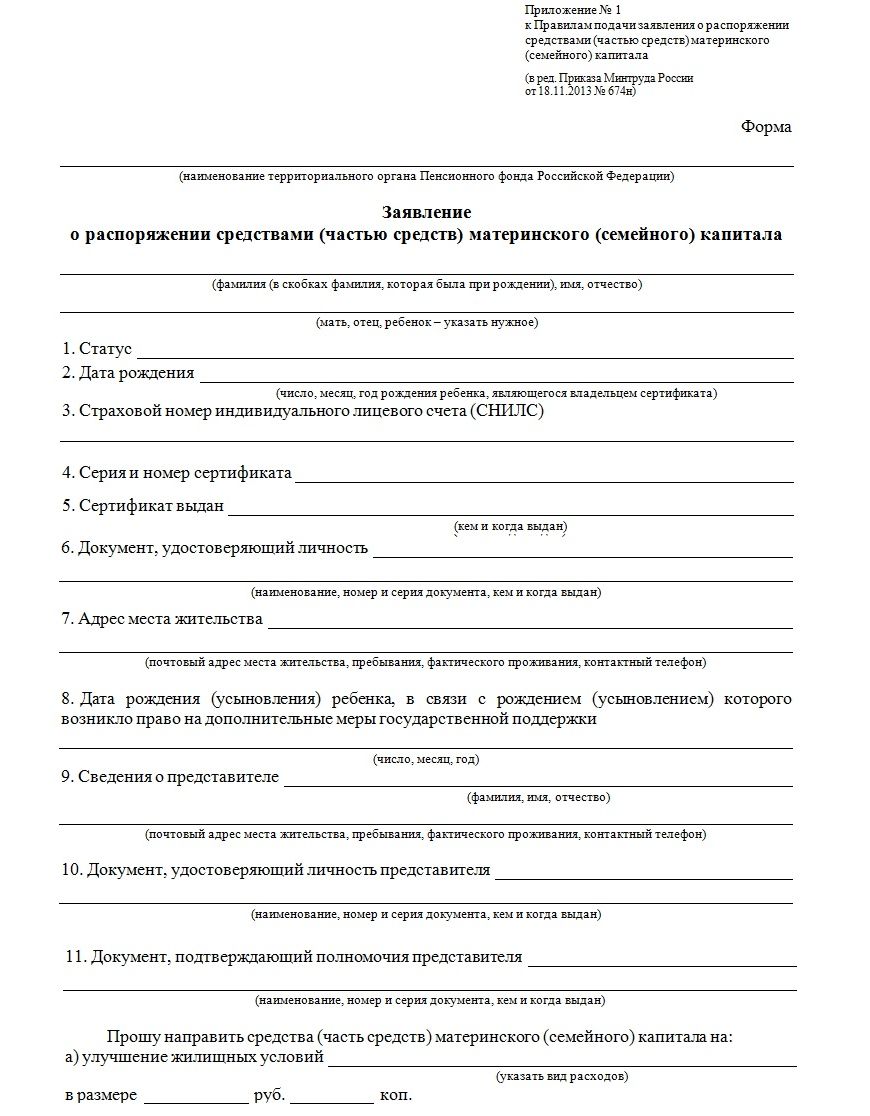 - стандартно составленное заявление о распоряжении средствами МСК, где однозначно указывается цель их взятия – «улучшение жилищных условий»;