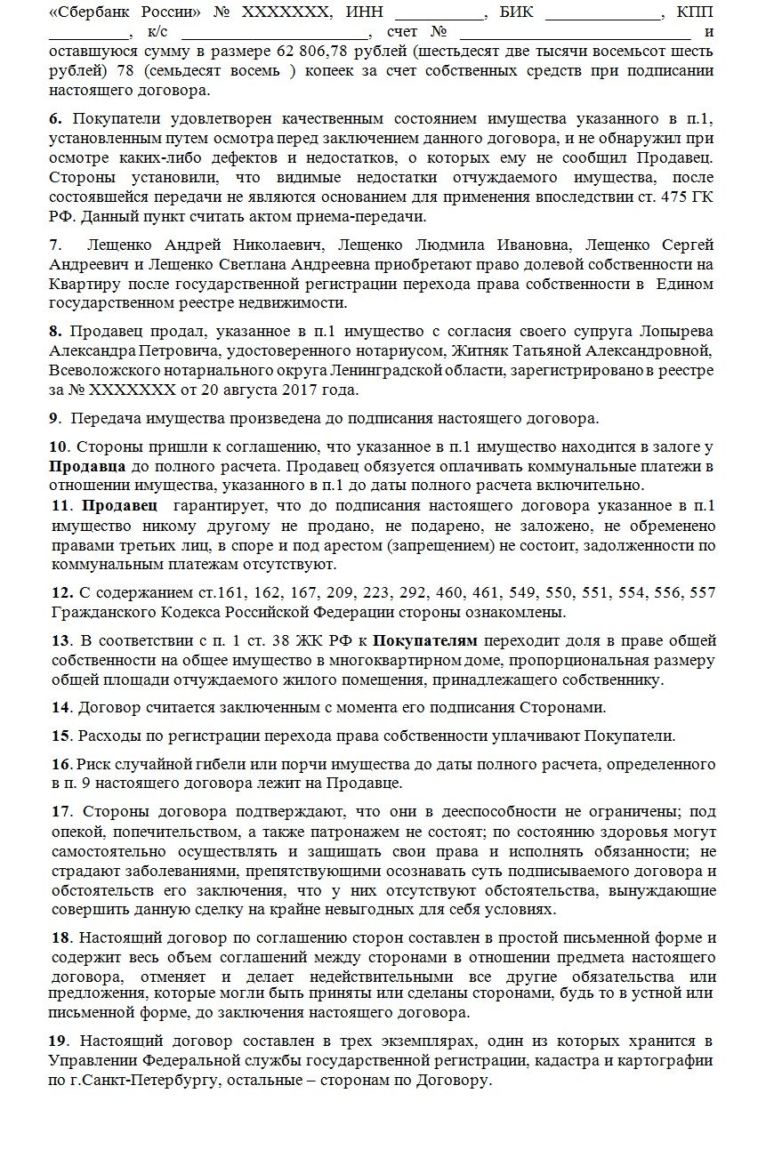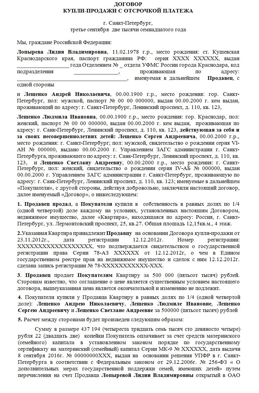 Образец договора купли-продажи квартиры у родственника на материнский капитал