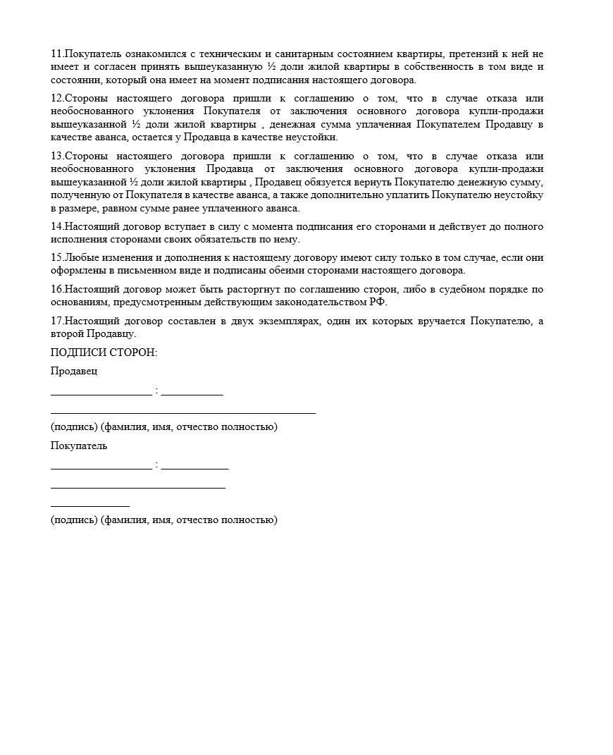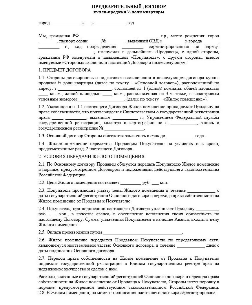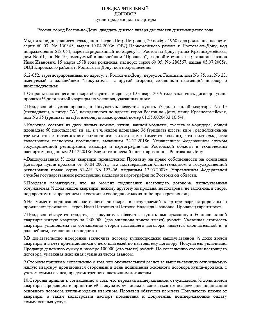 Предварительный договор купли-продажи доли в квартире