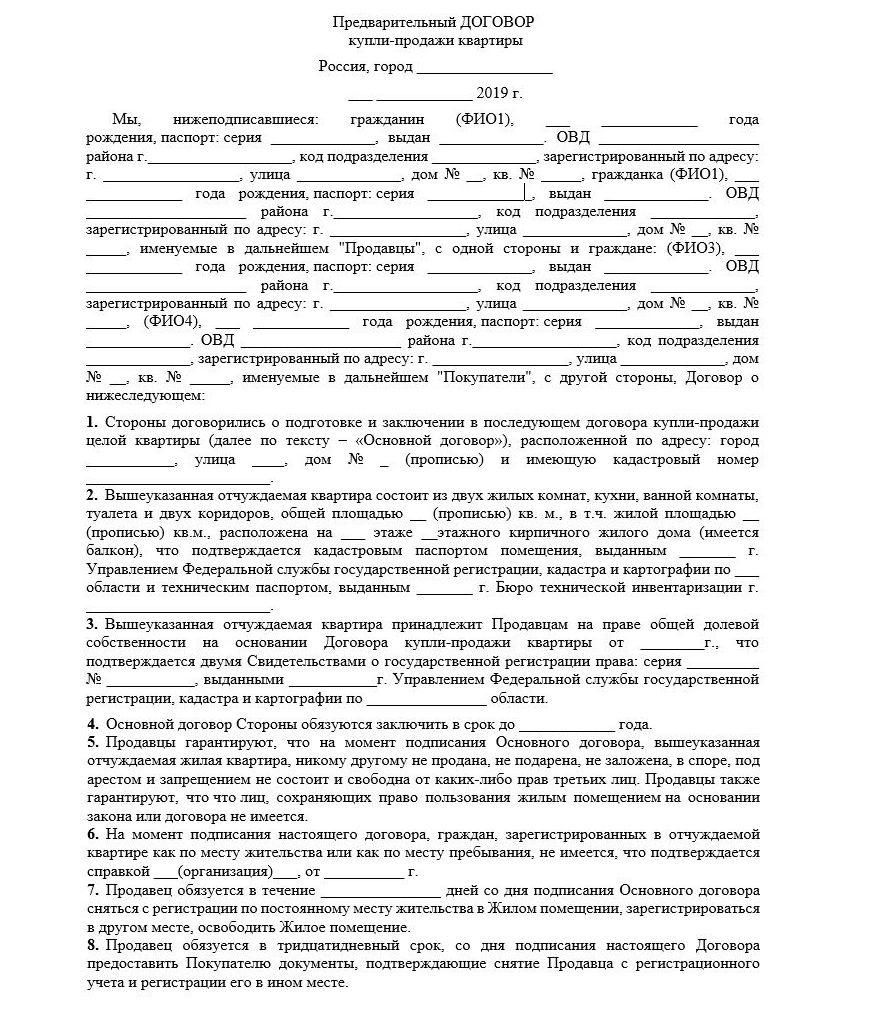 Образец предварительного договора купли-продажи квартиры с долями