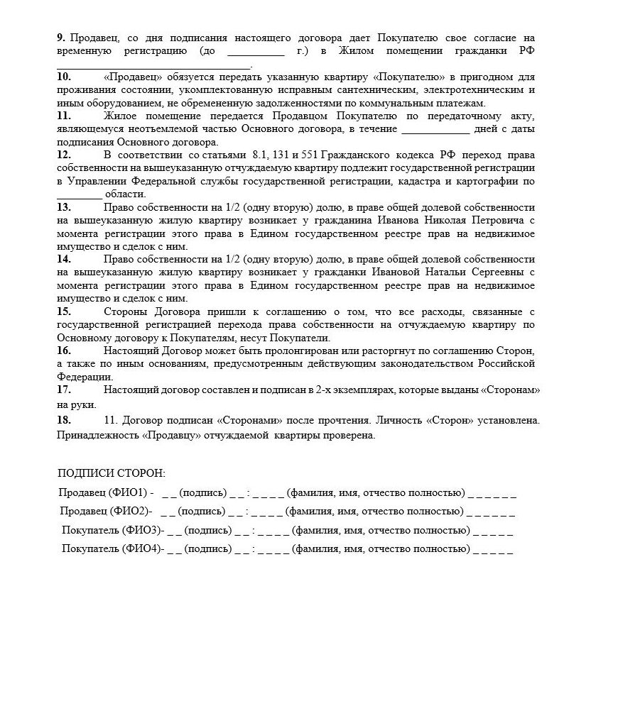Образец предварительного договора купли-продажи квартиры с долями детей