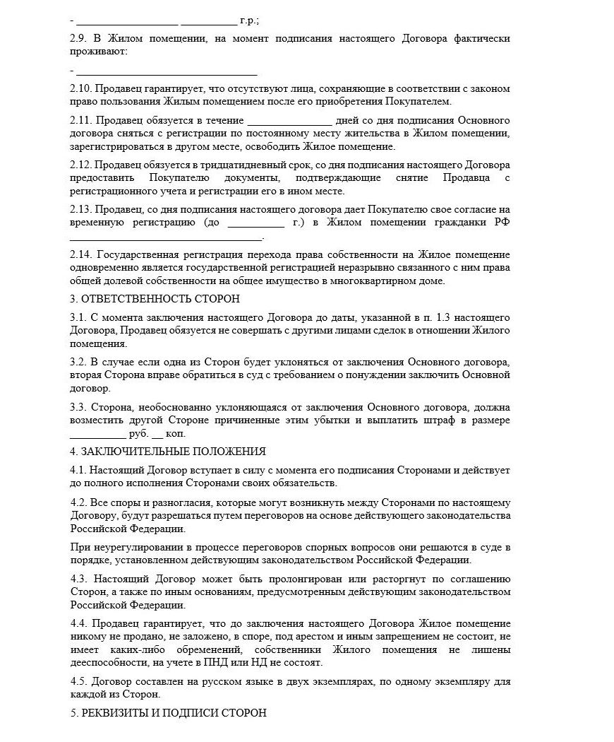 Образец предварительного договора купли-продажи доли в квартире