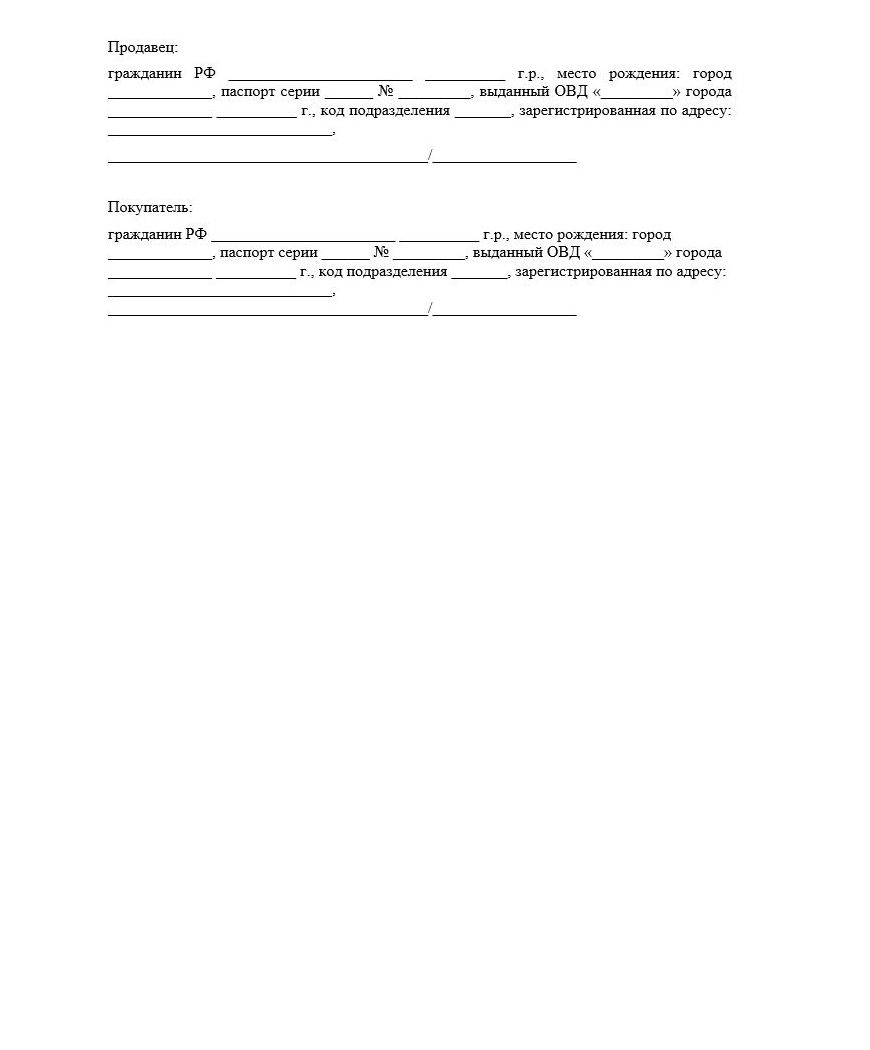 - Указание сторон сделки, их ФИО, паспортные данные.