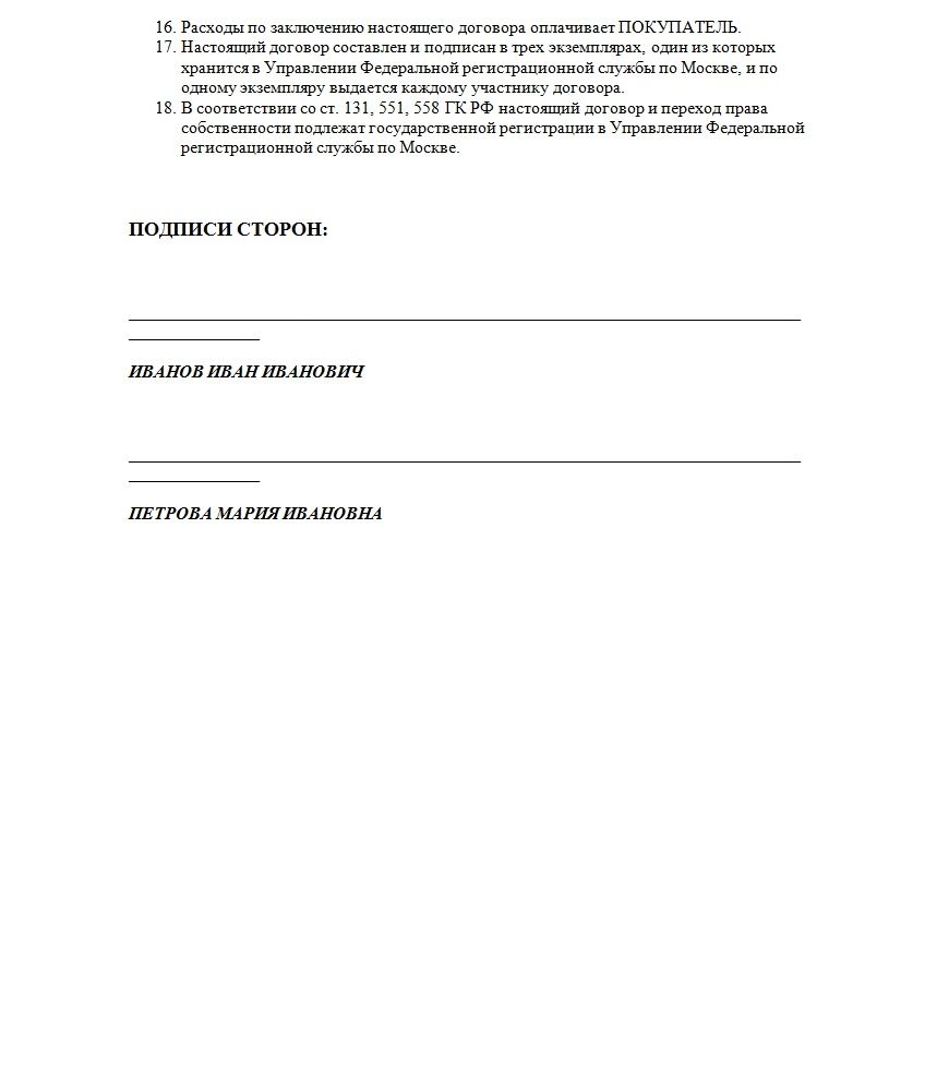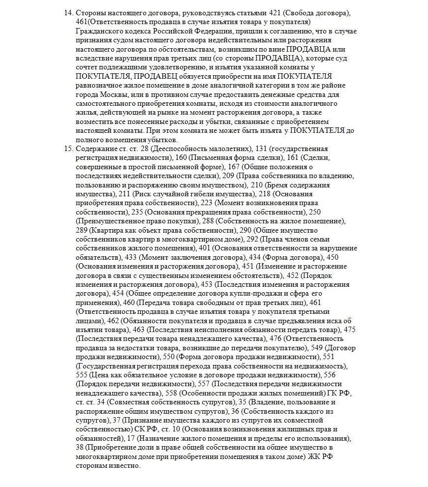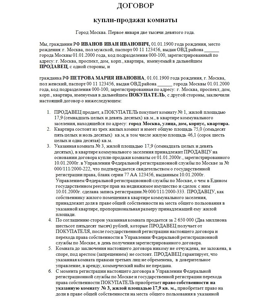 Образец договора купли-продажи комнаты в коммунальной квартире