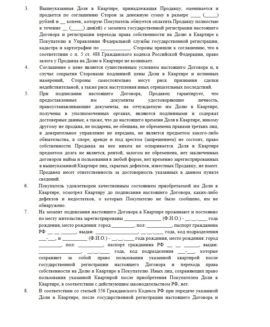 Договор купли-продажи доли в квартире между родственниками: образец 2026 года
