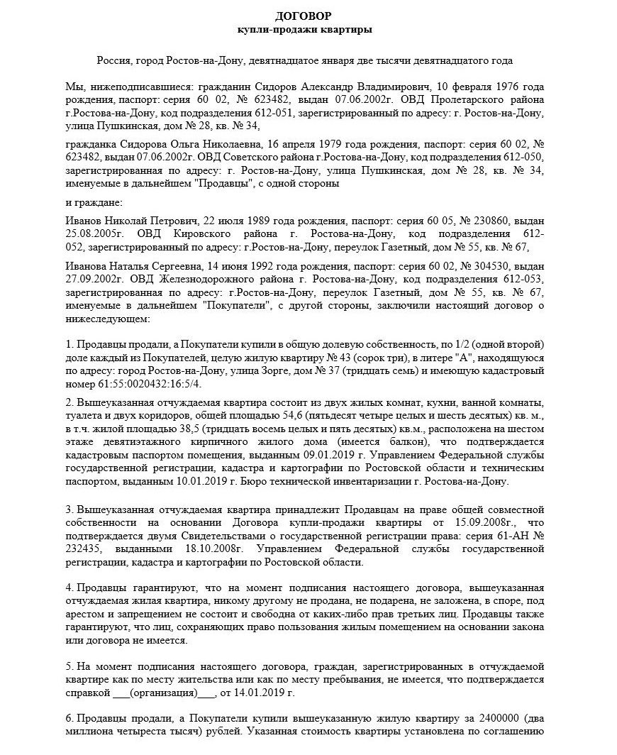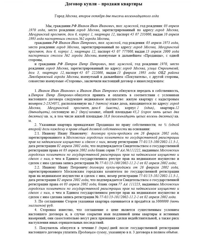 Как правильно составить договор купли-продажи квартиры от 2 собственников