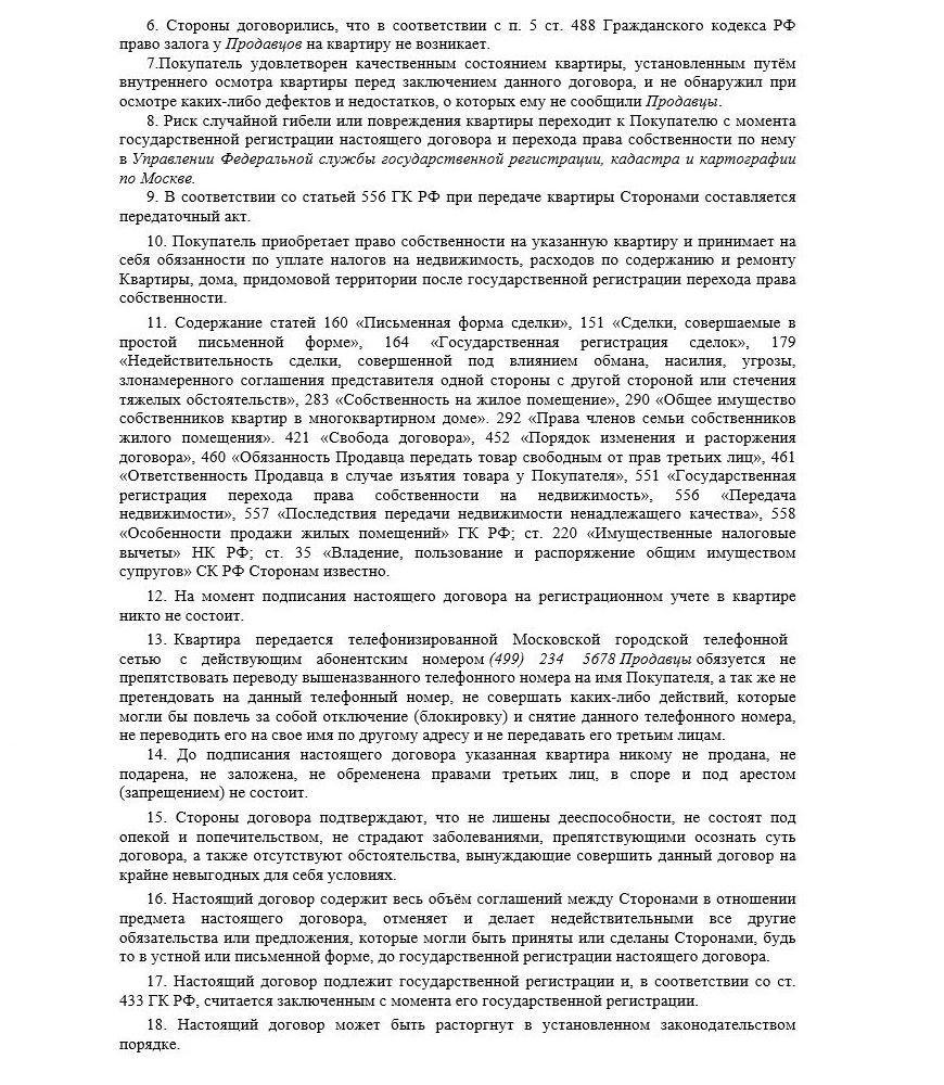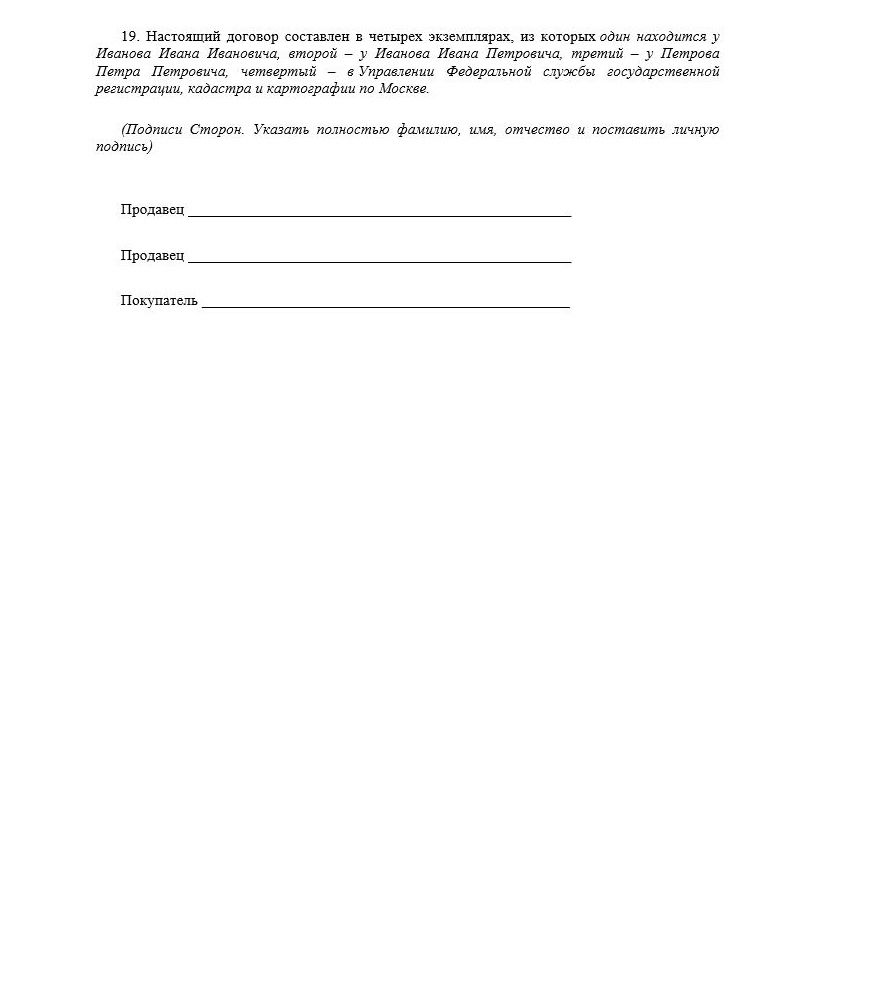 Образец договора купли продажи квартиры (два продавца, два покупателя)