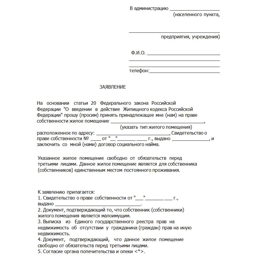 - опционально – просьба о последующем заключении договора социального найма в этом же жилом помещении;