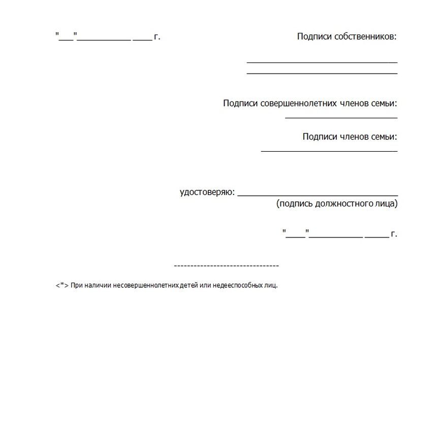 От лица малолетних (до 14 лет), недееспособных и ограниченно дееспособных граждан на официальных бумагах расписываются их опекуны. Если кто-либо из содольщиков не может присутствовать при подписании договора о деприватизации, ему необходимо заблаговременно составить доверенность на имя своего представителя.