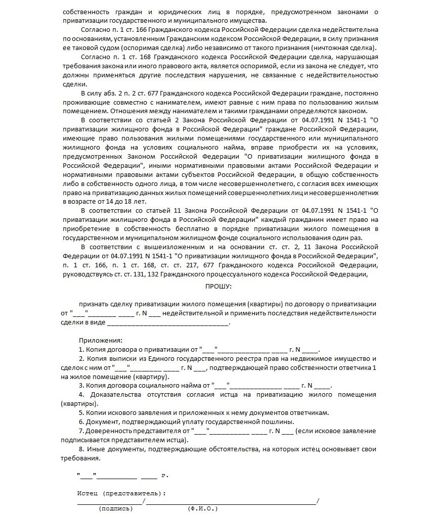 - Приватизация была проведена с серьезными нарушениями (например, в договор приватизации не включили несовершеннолетнего, недееспособного или ограниченно дееспособного гражданина, не были получены важные разрешения и согласия и пр.).
