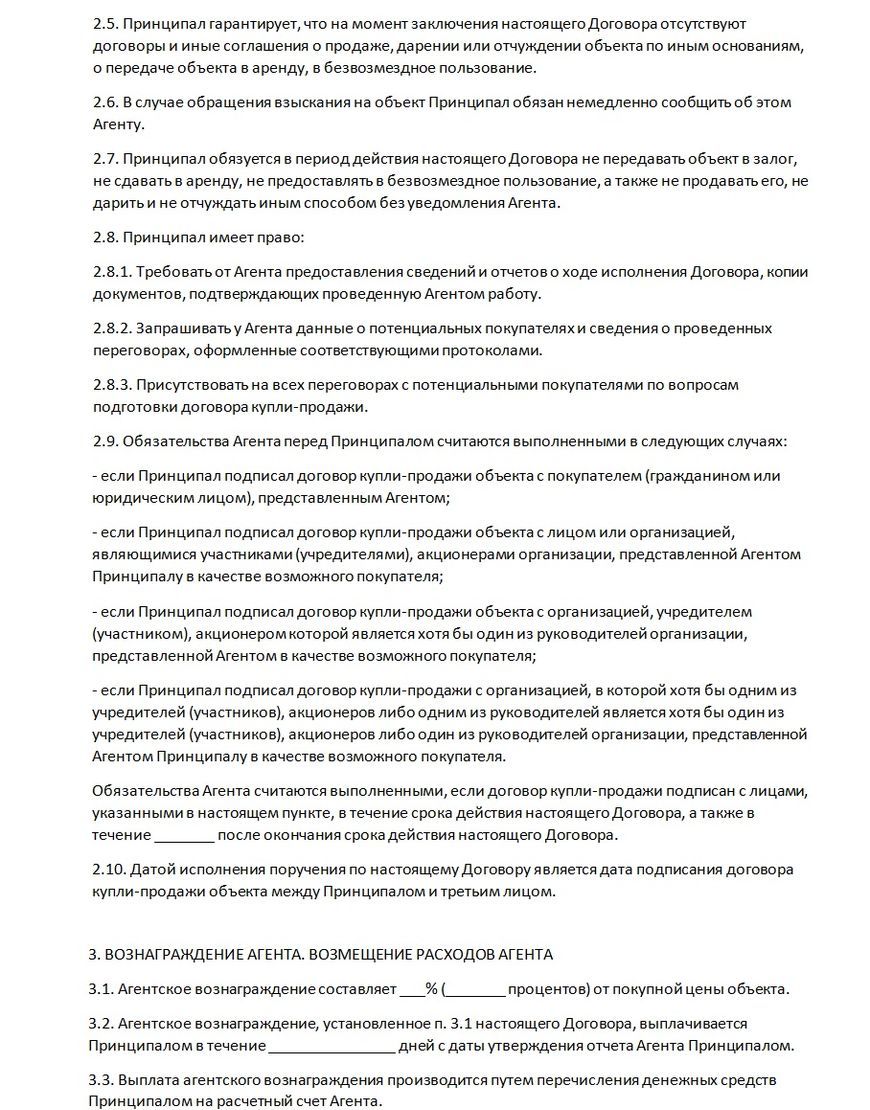 Клиент, подписывающий договор, берет на себя все финансовые и иные риски, которые могут возникнуть в ходе взаимодействия с риэлтором. Фактически «гарантии», которые риэлторы обещают на словах, никогда не фиксируются на бумаге. В агентских договорах указываются только обязательства специалистов совершить те или иные действия (т.е. предоставить свои услуги). Вот почему заказчик напрямую заинтересован в том, чтобы агентский договор был составлен без каких-либо нареканий. Необходимо опасаться пунктов: