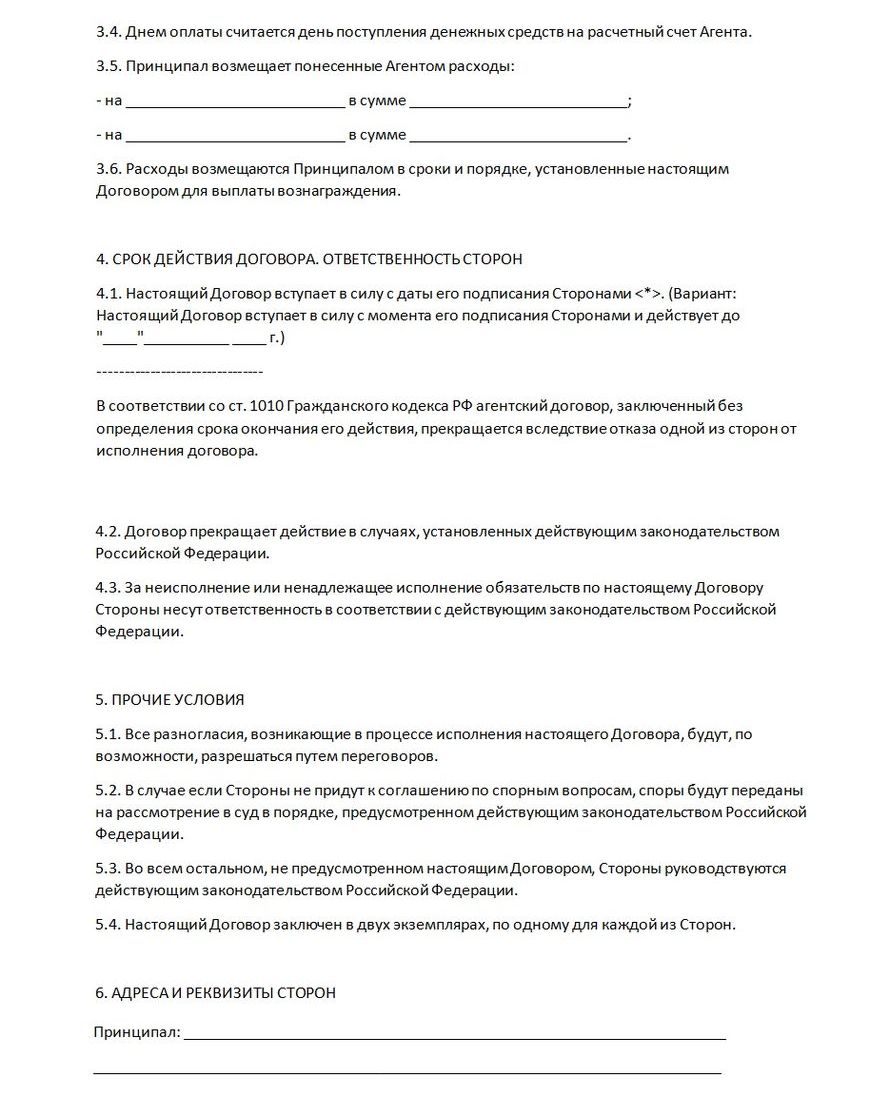 - Порядок оплаты расходов, понесенных агентом. В обязанности принципала входит возмещение всех расходов, подтвержденных документально.