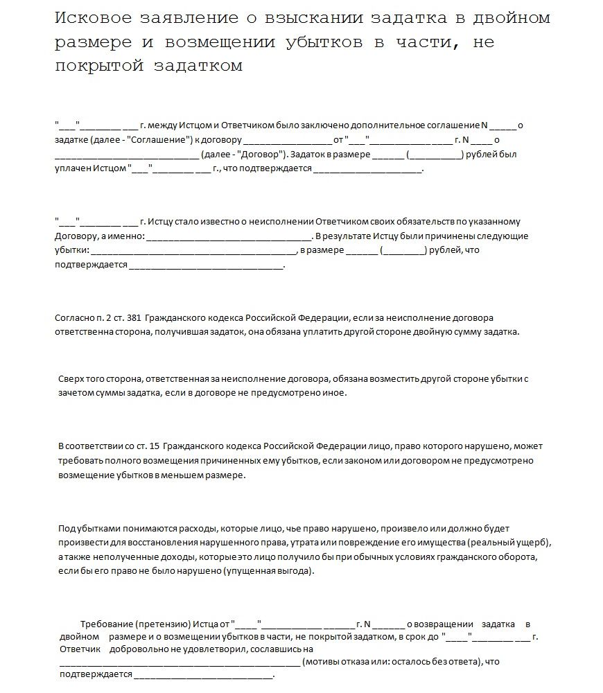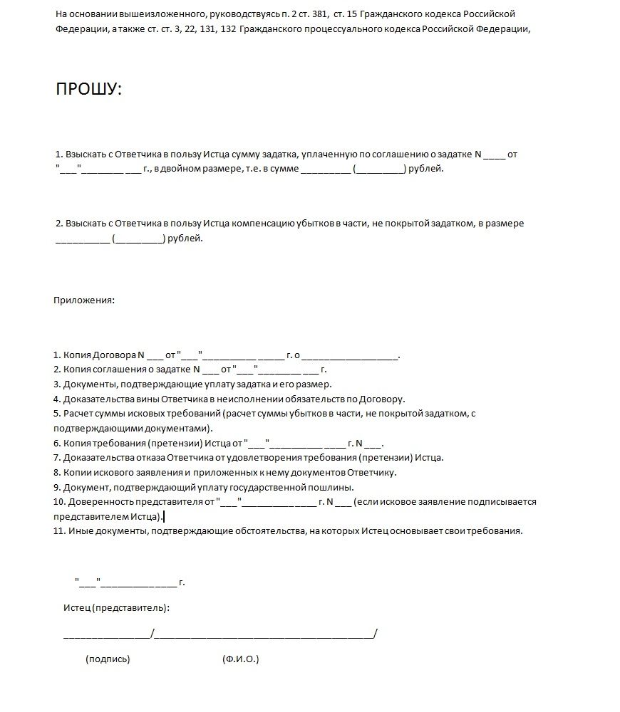 Судопроизводство осуществляется в стандартном формате. Для удовлетворения своих требований Истцу понадобится документально подтвердить факт вины Ответчика в неисполнении обязательств по предварительному договору купли-продажи и Соглашению о задатке.